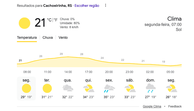 A semana inicia com predominância do sol e temperaturas agradáveis na Região Metropolitana. Nesta segunda-feira (13), os termômetros variam entre 18°C e 28°C, mantendo o tempo seco. A partir de terça-feira, as máximas começam a subir, chegando a 30°C. Em Gravataí e Cachoeirinha a previsão é mesma.