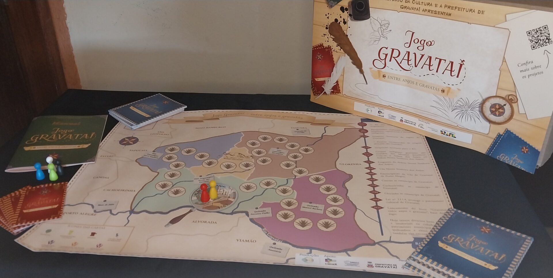 O Coletivo Projetos Culturais Irmãs TM realizará uma live na próxima sexta-feira (15/11), às 10h, em seu canal do YouTube, para marcar o lançamento oficial do jogo de tabuleiro “Gravataí: entre Anjos e Gravatás”. O jogo foi produzido com recursos da Lei Paulo Gustavo e será destinado a escolas municipais e estaduais da cidade para fins pedagógicos, visto que é inspirado na história do município e no livro homônimo, produzido pelo grupo em 2021.